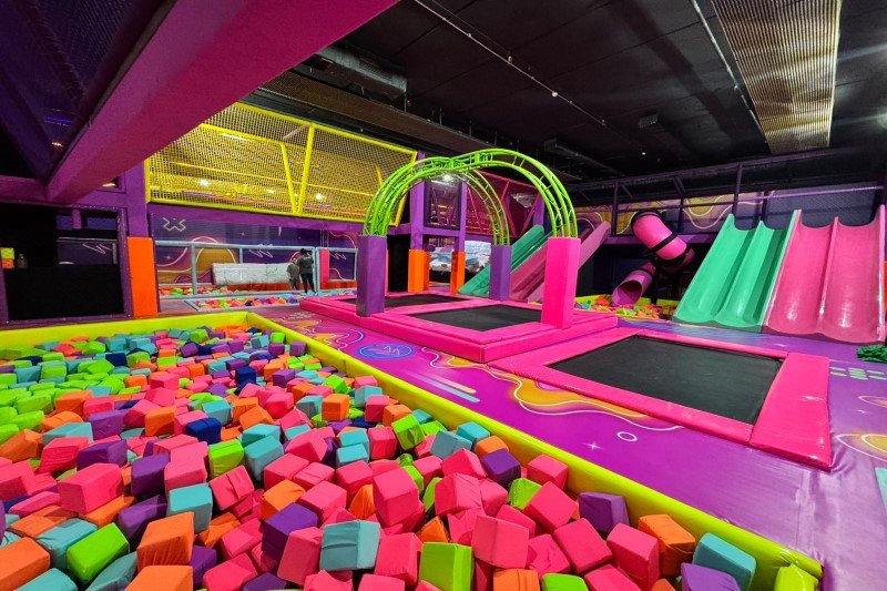 O espaço promete uma experiência completa de diversão, oferecendo atrações que estimulam a movimentação física das crianças. Entre elas, camas elásticas, tobogãs, tirolesa, piscina de espuma, circuito com obstáculos, barra de equilíbrio, e até mesmo uma cesta de basquete.