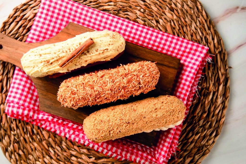De Norte a Sul do Brasil, as chamadas festas juninas adentram o mês de julho. De olho nessa época de festejos, a cafeteria e bistrô Éclair preparou uma edição limitada de éclairs de São João. Também conhecidas como bombas, elas têm coberturas e recheios inspirados nas receitas que tradicionalmente povoam as mesas dessas celebrações. A chef Millena Sá criou versões que unem a sofisticação da confeitaria francesa e as memórias afetivas da cultura caipira brasileira.